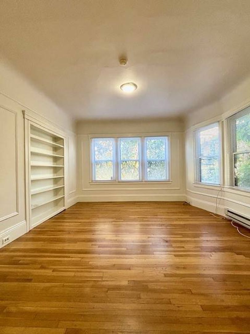 Water and garbage included. Laundry room, with coin-op machines, is at the bottom of the backstairs. This is a non-smoking unit. No pets. Good rental references and credit such as no late payments required. One year lease. $4095 deposit. Garage parking for additional $325/month (compact car) or $400/month for semi private garage.